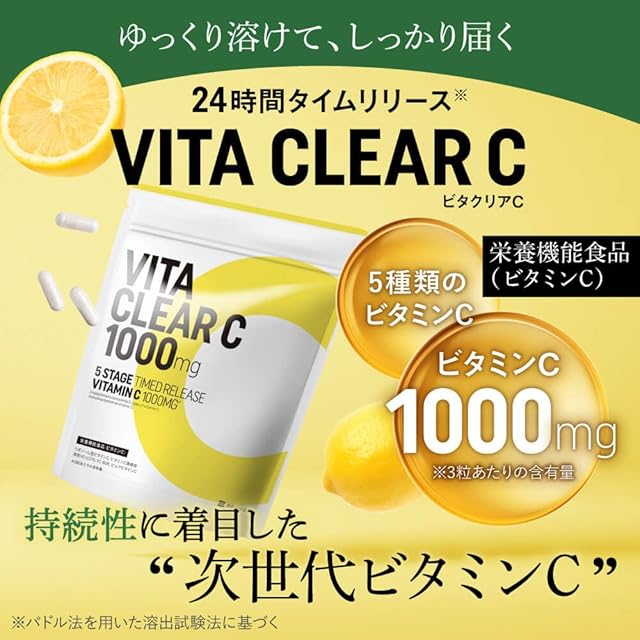 ビタクリアC 高濃度 ビタミンC サプリメント 1,000mg配合 リポソームビタミンC タイムリリース 国内製造 30日分