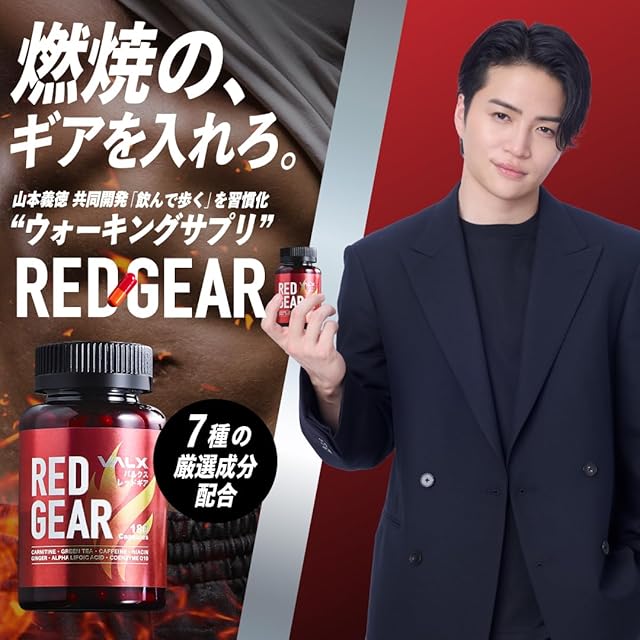 【累計1000万食突破!VALXこだわりのウォーキングサプリ】※ 「VALX RED GEAR(バルクス レッドギア)」は、山本義徳監修のもと、シェイプアップを目指す方をサポートする7つのこだわり成分を贅沢配合。脂肪をエネルギーに変えるサポートをします。安心・安全な成分を使用するだけでなく、豊富な配合を実現しました。運動する方だけでなく運動しない方にもRED GEARで、理想のカラダ作りを追求するための毎日の新習慣をご提供いたします。 ※2021年2月1日〜2024年3月31日 自社調べ 【おすすめのお召し上がり方】 ・通勤通学で歩く15〜30分前にお飲みください。 ・トレーニングの15〜30分前にお飲みください。 ・日中、体を動かす作業などがある際にお飲みください。 1日6カプセル程度、1回あたり3カプセルを目安に水などと一緒にお召し上がりください。 日本人は諸外国と比べて、歩く量が非常に多いと言われております。 日々の歩く時間の燃焼効果を効率的に高めることで、理想の体作りをサポートします。 【こんな方におすすめ】 ・脂肪が気になる方へ ・忙しくてなかなかトレーニングできない方へ ・食事や運動に気を遣う余裕のない方へ ・生活習慣に危機感のある方へ ・トレーニングを効率化したい方へ ・合理的/効率的に理想の体に近づきたい方へ 【人間の脂肪燃焼メカニズムをご存知ですか?】 実は、人間が脂肪を燃焼してエネルギーに変えるには、必ず4つのプロセスを経る必要があります。 ①リパーゼという酵素が脂肪を分解して、脂肪酸を分離させます。 ②脂肪酸が血管を通って、カラダ中に運ばれます。 ③脂肪酸がカルニチンと結合することで、細胞内のミトコンドリアに取り込まれます。 ④細胞内でコエンザイムQ10やαGPCが触媒として用いられ、脂肪酸が燃焼してエネルギーに変わります。 中でも重要なのが、L-カルニチンで、これがないとせっかく分解された脂肪が燃焼されずに、再び脂肪としてカラダに蓄えられてしまいます。 【成分量への特別なこだわり】 ※1日6カプセル当たり <分解サポート2成分> ・緑茶カテキン 500mg(ペットボトルのお茶約1本分) ・天然カフェイン 200mg (コーヒー約2.5杯分) <運搬サポート2成分> ・ジンジャーエキス 60mg ・ナイアシン 100mg (鶏ささみ約10本分) <燃焼サポート3成分> ・L-カルニチン 400mg (鶏胸肉約2枚分) ・コエンザイムQ10 60mg(イワシ約15匹分) ・αリポ酸 60mg(ほうれん草約1束分)