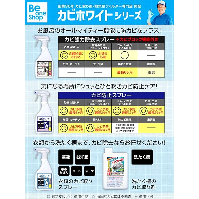 【開発メーカーについて】おそうじ関連業務30年以上、ネット通販15年以上の企業、ビーワンコーポレーションが開発した本格派のカビ取り剤になります。