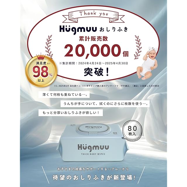 商品名:Hugmuu (ハグムー) おしりふき 厚手 おしり拭き 大判 蓋付き お尻拭き 赤ちゃん ベビーワイプ ウェットティッシュ 出産祝い タオルのような厚み 水分99% 720枚(80枚×9個)