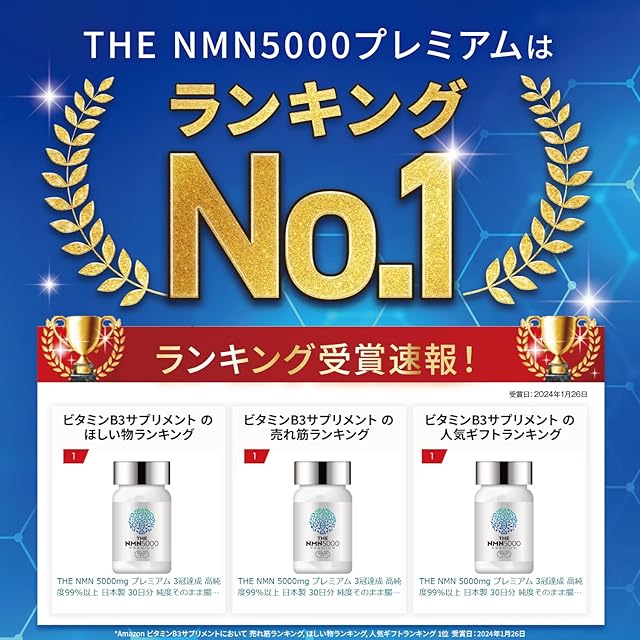 ✅【NMN5000mgでエイジングケアを実現!純度99%以上!臨床試験実施済!NO.1ランキング三冠達成】