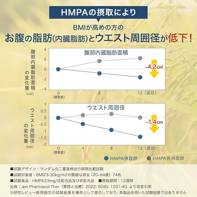 ✅【届出表示】本品には3-(4-ヒドロキシ-3-メトキシフェニル)プロピオン酸(HMPA)、GABAが含まれます。HMPAには、BMIが高めの方の腹部の脂肪(内臓脂肪)とウエスト周囲径を減らす機能が報告されています。また、HMPAには、食後血糖値が高めの方の食後に上昇した血糖値を下げる機能が報告されています。GABAには、血圧が高めの方の血圧を低下させる機能があることが報告されています。また、GABAには仕事や勉強などによる一時的な精神的ストレスや疲労感を緩和する機能があることが報告されています。【届出番号】I1171