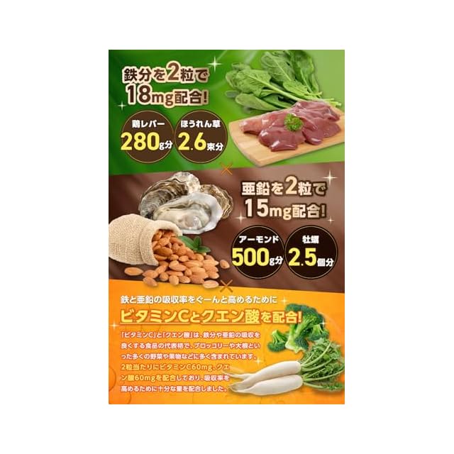 【吸収率と飲みやすさへのこだわり】鉄と亜鉛の吸収率をアップさせる役割を担ってくれるビタミンCとクエン酸を配合!より効率的に鉄と亜鉛を吸収できるように致しました。 また、飲みやすさの追求のため天然ミネラル分が豊富な竹炭末を配合し、鉄っぽさや亜鉛っぽさを味覚や風味から無くことに成功しました!