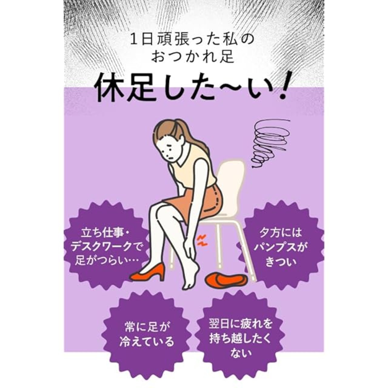・使い方は簡単な2ステップ。寝る前に足裏に貼り付け、翌朝剥がすだけで、手軽に利用できます。
