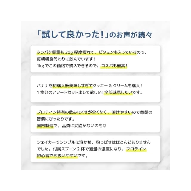 毎日をもっとハッピーに。 LAT.s(ラット)プロテインは、【おいしさ・飲みやすさ・栄養バランス】のすべてにこだわった、新しいホエイプロテインです。 【WHEYプロテイン100%使用】 吸収スピードが速く、体づくりに最適なホエイプロテインを100%使用。理想のカラダづくりをサポートします。 【アミノ酸スコア100】 必須アミノ酸をバランスよく含み、効率よくカラダに届く設計。質にこだわるあなたの強い味方に。 【ビタミン11種配合】 日常生活で不足しがちな11種のビタミンを一度にチャージ。健康的でアクティブな毎日を応援します。 【毎日飲みたくなるおいしさ】 独自の配合で「フレーバー」と「溶けやすさ」を両立。甘すぎず、後味もスッキリ。初心者でも続けやすい味わいです。 【国内製造&高コスパ設計】 安心の国内工場で製造し、コストパフォーマンスにもこだわりました。プロテイン×ビタミンをこの1杯で。 運動後の栄養補給に、 忙しい朝の置き換えに、 日々のコンディショニングに。 あなたの毎日に、LAT.sを。
