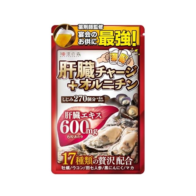 和漢の森 肝臓 チャージ オルニチン 180粒 田七人参 ウコン 亜鉛 牡蠣 黒にんにく マカ 栄養機能食品 国内製造 (1袋)