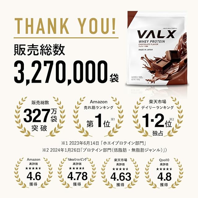 メジャーリーガー多数指導のトレーナー界のレジェンド!山本義徳完全プロデュースの【VALX ホエイプロテイン キャラメルマキアート風味】は安い・美味しい・溶けやすいの3点を叶えた商品です。 トレーニングの可能性や日々の栄養補給の大切さをもっと多くの人に届けたい。 この想いを形にするため、何十回もの試作を重ね、味・溶けやすさ・そして毎日続けられる価格を実現した「VALXホエイプロテイン」がついに完成しました! もちろんたんぱく質含有量にもこだわり、一杯で約21.6gのたんぱく質が取れます。