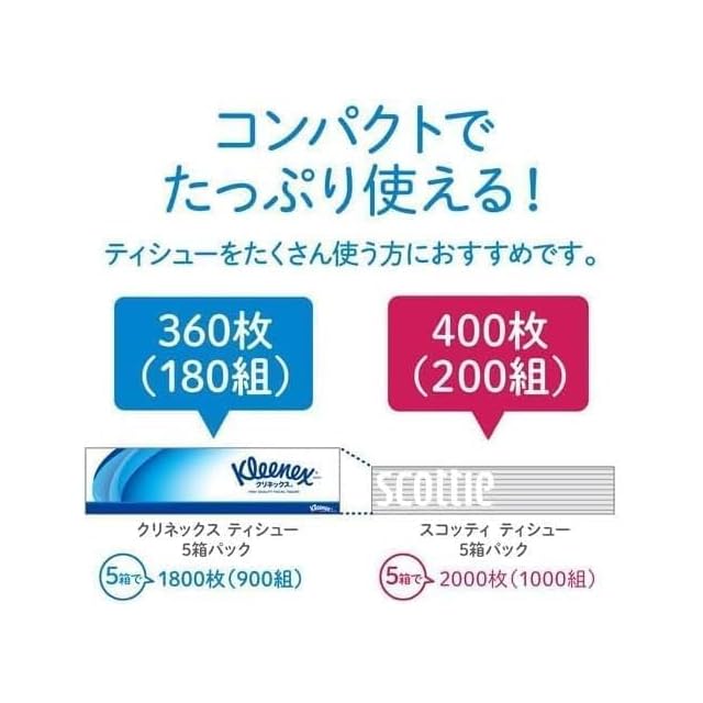 商品名:スコッティ ティシュー 400枚(200組) 5箱パック まとめ買い